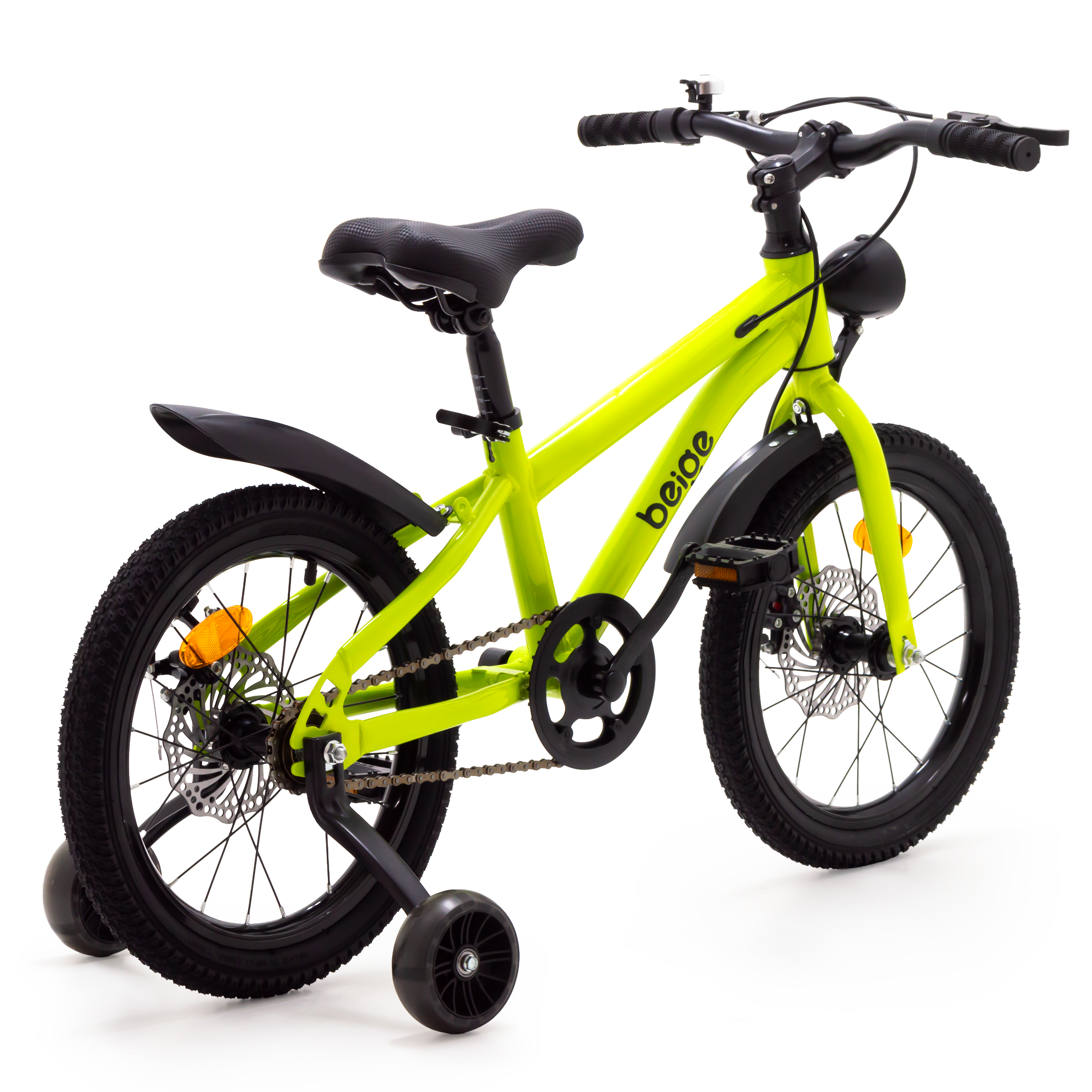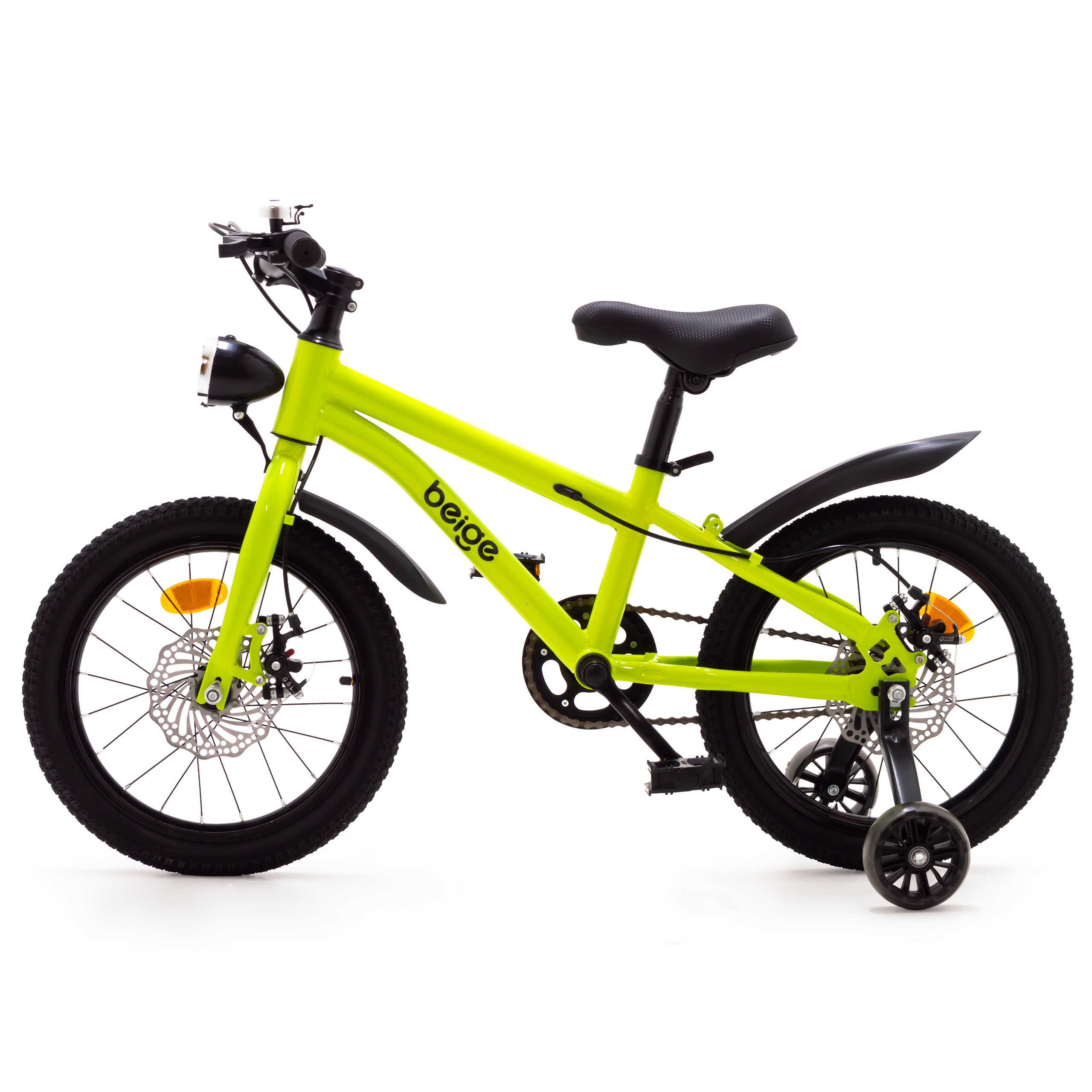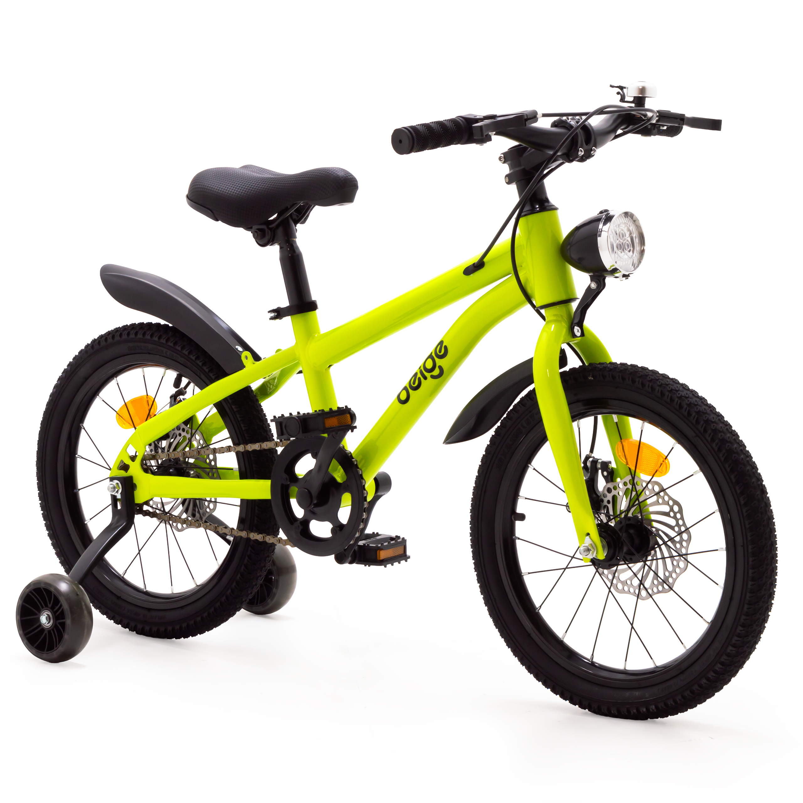 Nowoczesny rowerek dziecięcy w intensywnym zielonym kolorze został zaprojektowany z myślą o wygodnej i bezpiecznej jeździe. Model wyróżnia się przednim i tylnym hamulcem tarczowym, które zapewniają skuteczne hamowanie oraz dobrą kontrolę nad rowerem. Dodatkowym atutem jest lampka oraz silikonowe, świecące kółka boczne, które wspierają naukę jazdy i podkreślają atrakcyjny wygląd roweru. To funkcjonalny model dla dzieci, które rozpoczynają swoją przygodę z jazdą lub rozwijają już zdobyte umiejętności.