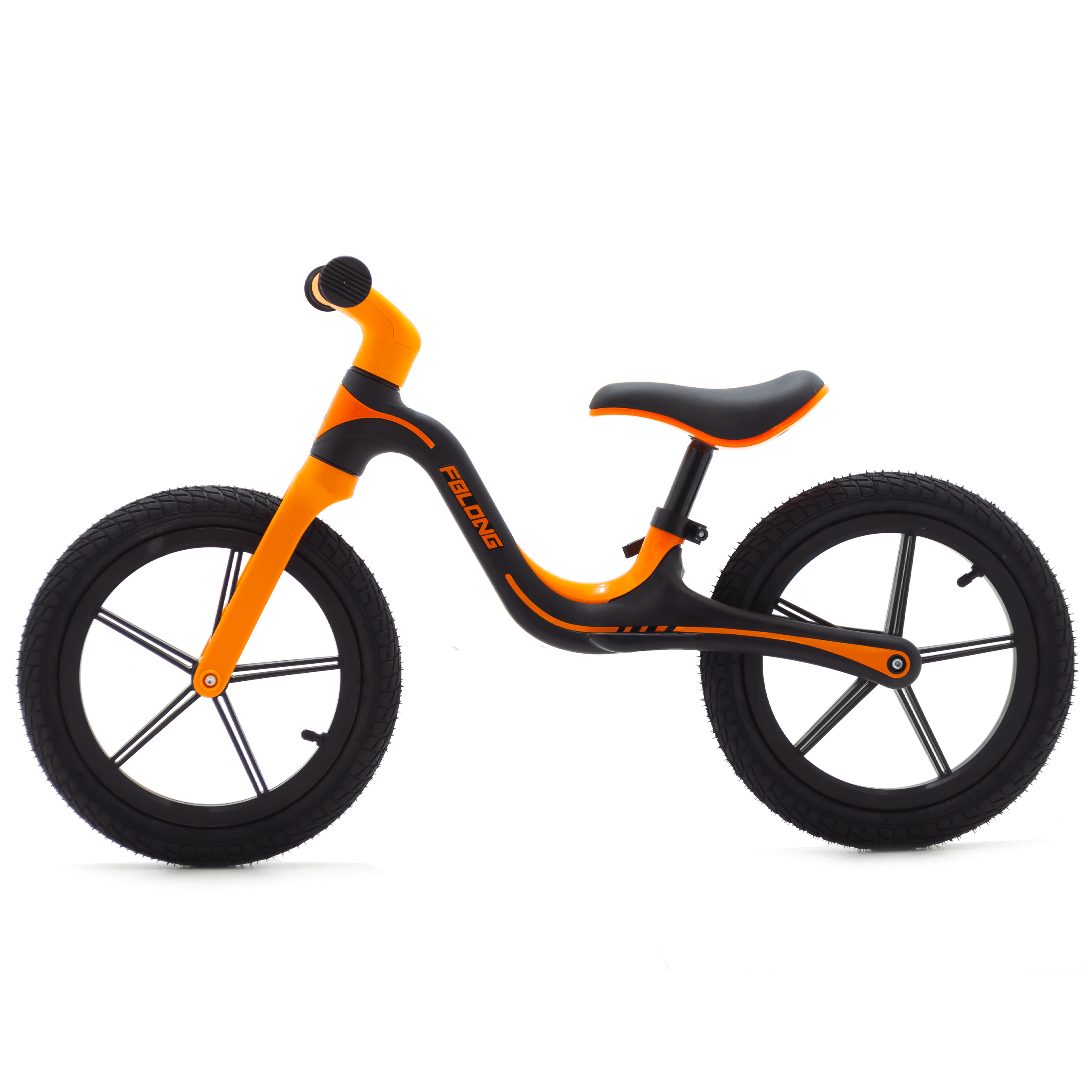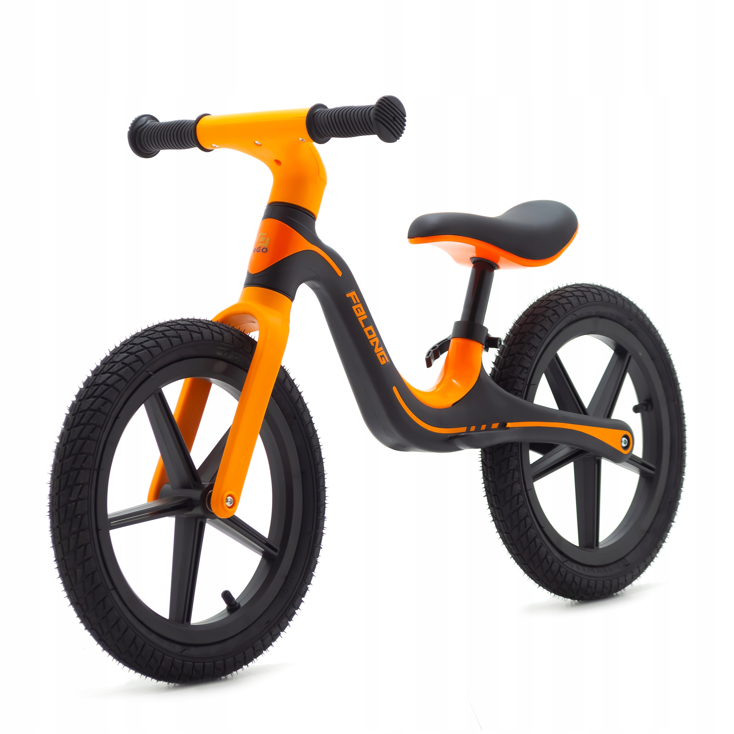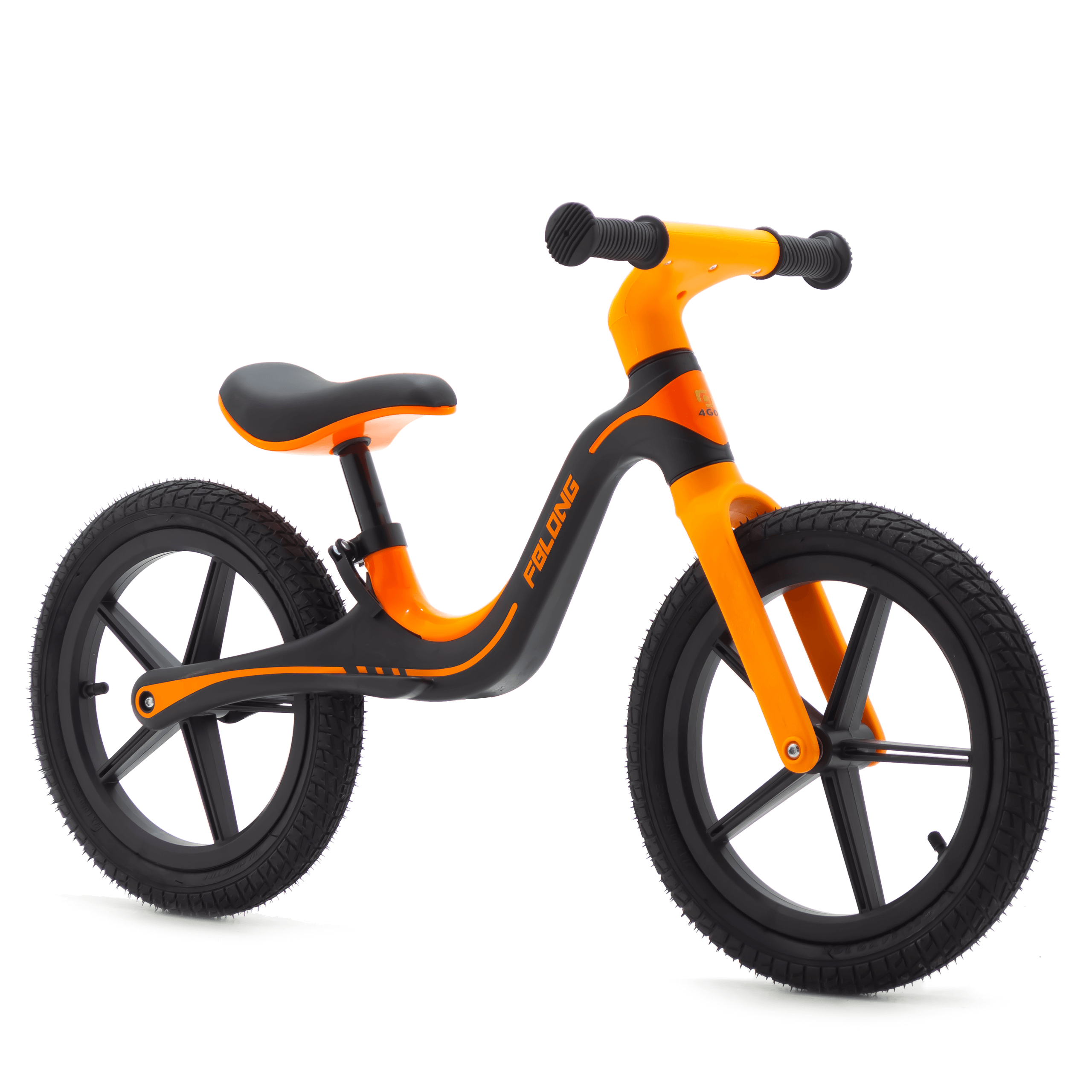 Postaw na aktywny rozwój dziecka – wybierz rowerek biegowy 4Go w kolorze czarno-pomarańczowym.